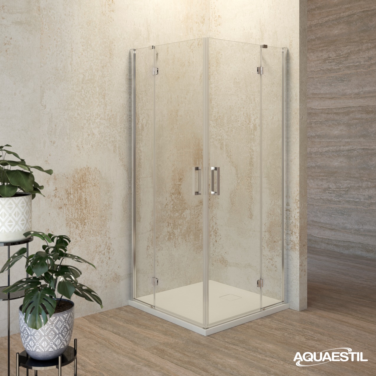 Aurora D+D ist eine moderne Glaswand für Duschwannen, und besteht aus zwei Seiten mit Drehtür unterschiedlicher oder gleicher Dimensionen, die miteinander kombiniert werden können. Das 6mm dicke, gehärtete Glas, die Drehtür, hochwertige Magnetdichtung und Schutzleisten an der Kreuzung der Türen und der Duschwanne bieten ein Höchstmaß an Funktionalität.