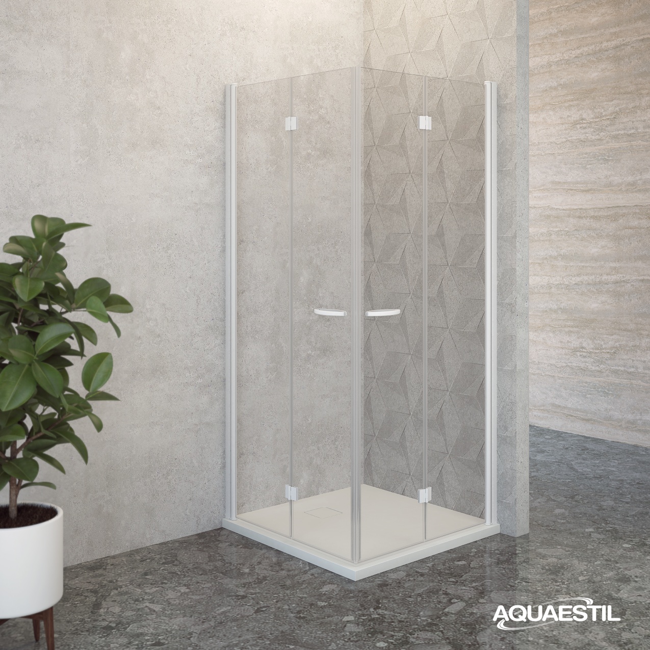Diese moderne Glaswand besteht aus zwei Drehtüren, die sich nach Innen überklappen, so dass sie leichter zu betreten und verwenden sind. Sie sind charakteristisch für ihre eleganten und in Querchnitt runden Profilen, und die Höhe von 2 m macht sie kompatibel mit modernen sehr flachen Duschwannen.