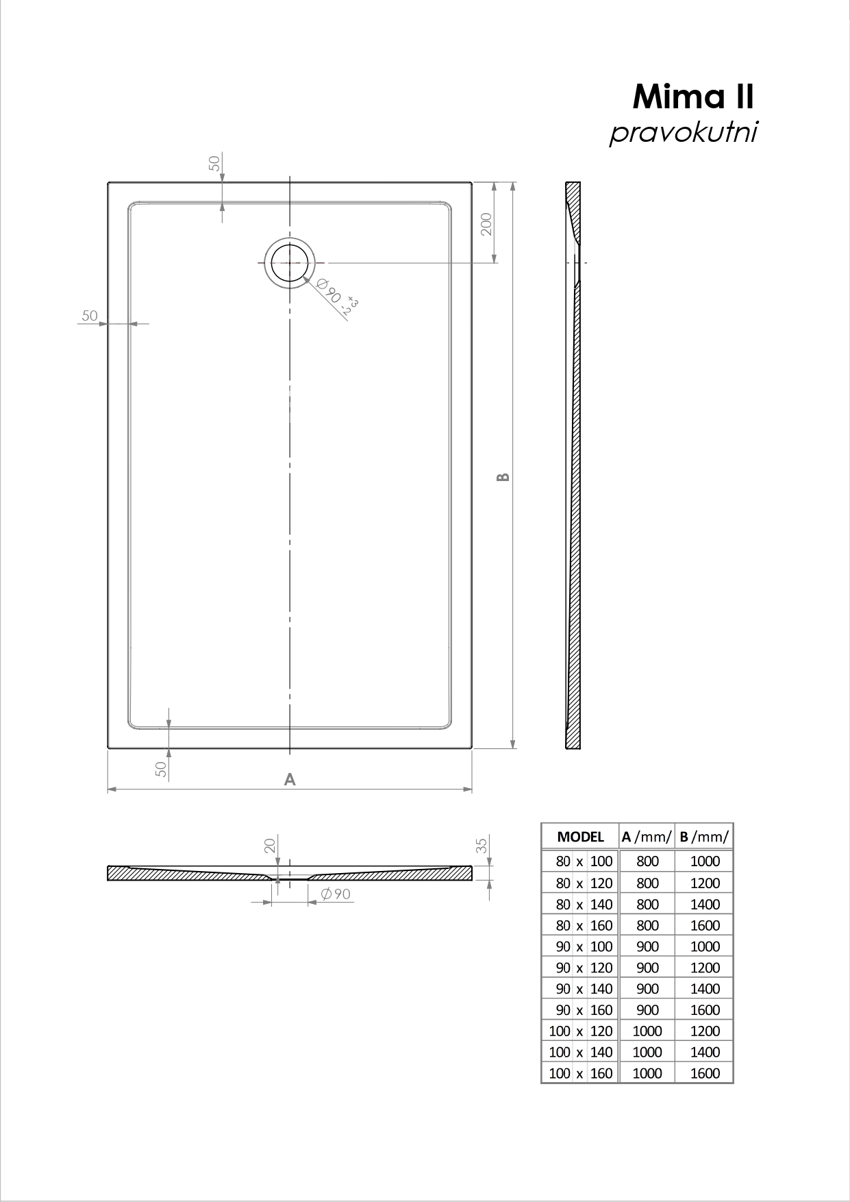 Mima ist eine Duschwanne aus gegossenem Marmor, die hauptsächlich für den Einbau auf Bodenhöhe vorgesehen ist. Es ist an seinen einfachen Linien und dem klassischen Siphon-Design zu erkennen. Die Besonderheit der Variante Mima II besteht in der Position des Siphons neben der kürzeren Seite der Duschwanne.