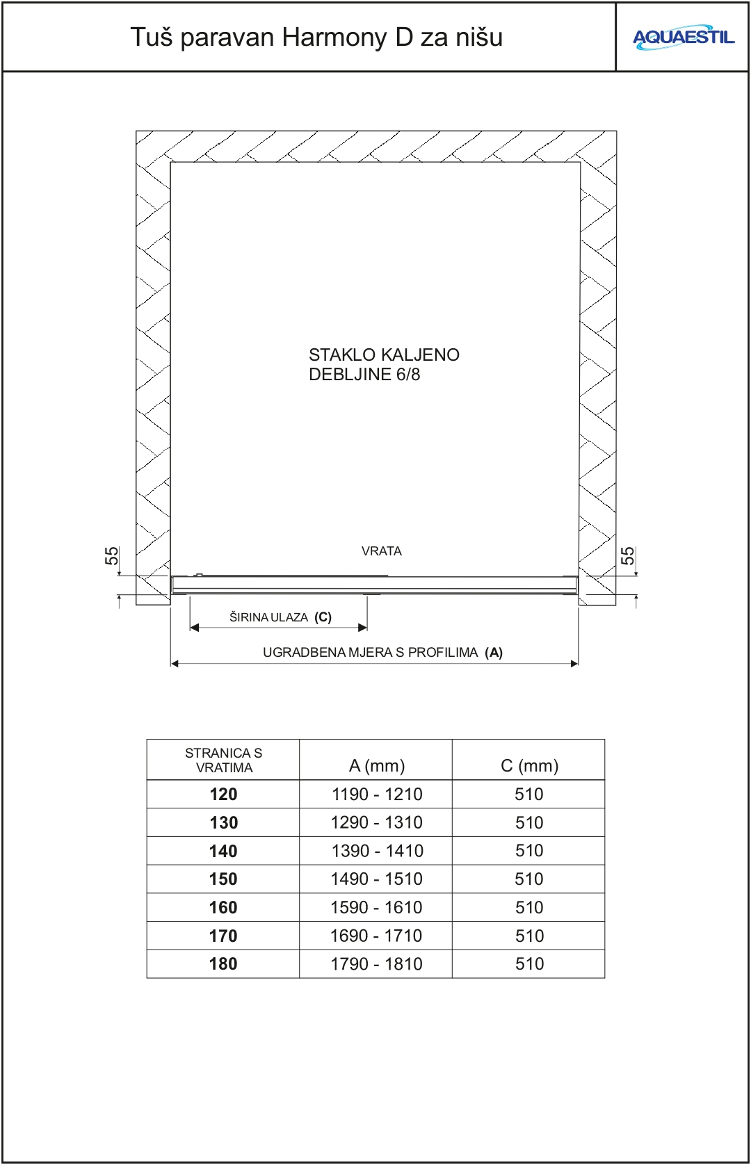 Harmony D for niche is an elegant sliding-door shower enclosure with a standard height of 210 cm, equipped with a concealed soft-close system and a door separation system for easier cleaning and maintenance. The design of Harmony shower screens incorporates advanced features with minimal use of profiles. The variant for niche consists of a side with a fixed part and sliding doors.