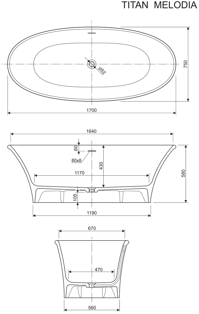 The elegant Titan melodia freestanding bathtub is available only in a cast marble version and in white.