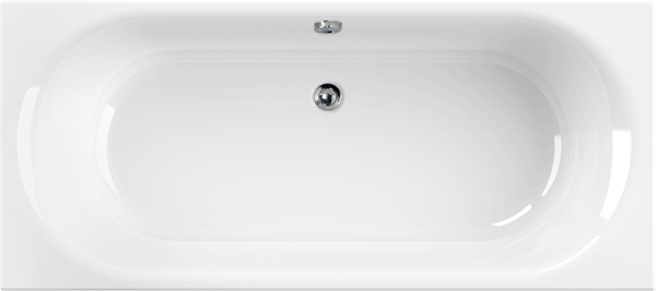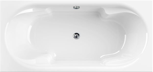 Vasche da bagno rettangolari ergonomicamente progettate con base integrata, set troppopieno-scarico e pannelli collegati senza soluzione di continuità. Disponibili in due dimensioni diverse.