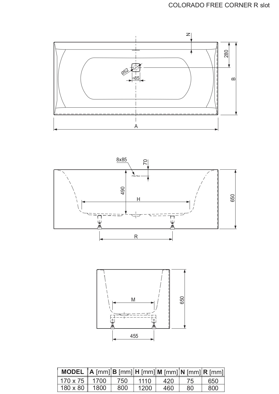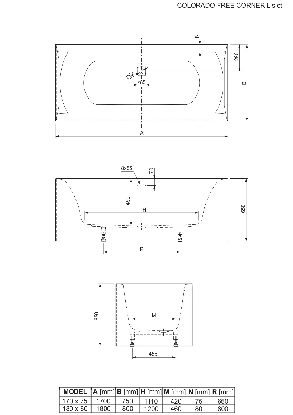 Colorado Free è una serie di vasche da bagno rettangolari le cui principali caratteristiche sono il design elegante, il comfort e la semplicità di montaggio. Queste vasche da bagno sono realizzate in acrilico sanitario colato di qualità, piacevole al tatto, resistente, naturalmente antiscivolo e di facile manutenzione. Le vasche da bagno Colorado Free sono dotate di telaio montato in fabbrica e un set troppopieno-scarico con troppopieno "slot" e valvola sifone "click-clack". Tutti gli elementi sono assemblati in fabbrica e la vasca viene consegnata pronta per l'installazione nel tuo bagno.