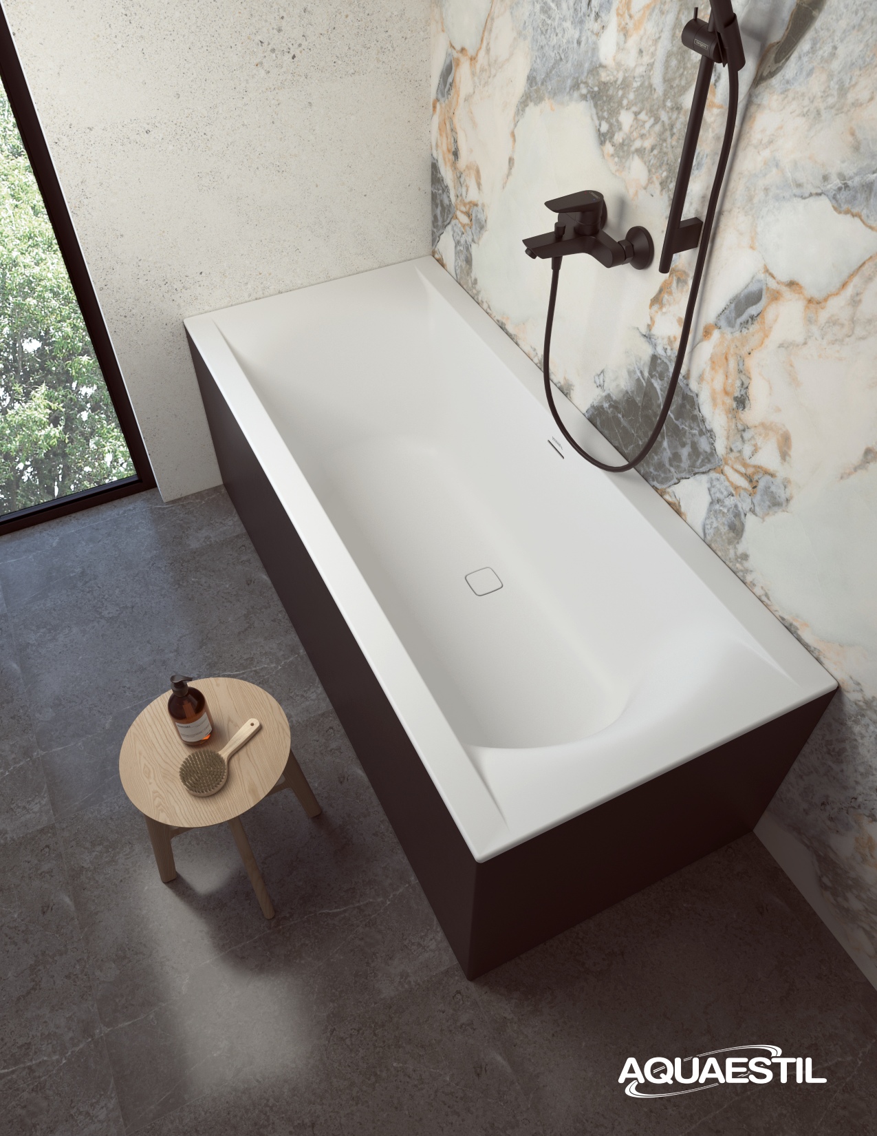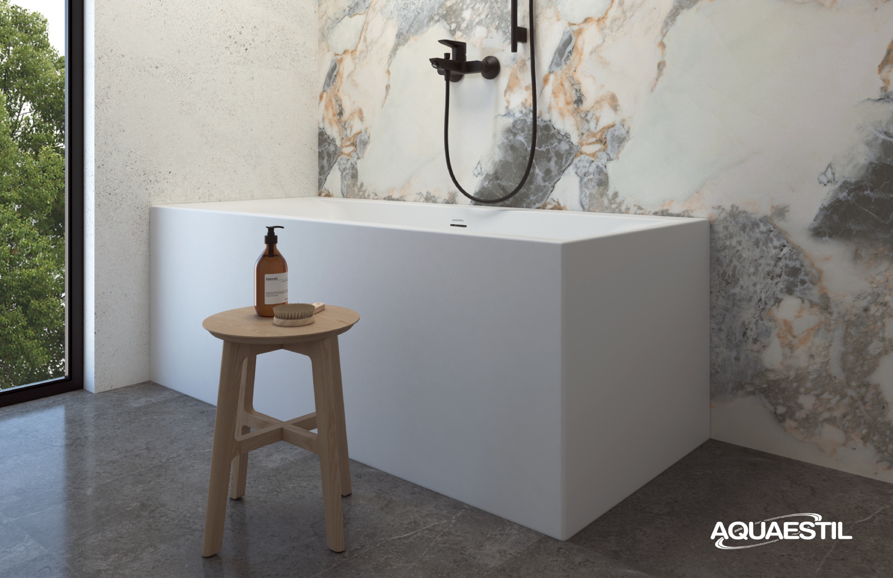 Per pulire la superficie delle vasche da bagno in acrilico sanitario colato Aquaestil, consigliamo la agente per la pulizia delle superfici in acrilico e vetro Aquaestil.