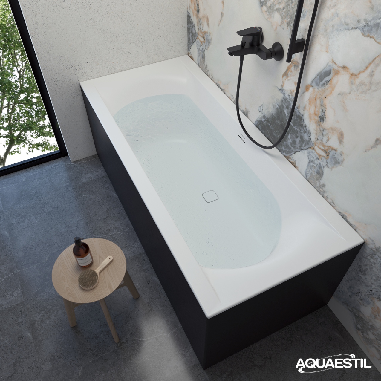 La pulizia e la manutenzione quotidiana delle vasche da bagno in acrilico sanitario colato Aquaestil è semplice e veloce. Per la pulizia utilizzare un panno o una spugna liscia e un comune detersivo liquido da bagno. Evitare detergenti abrasivi e agenti di pulizia che contengono microgranuli che potrebbero graffiare la superficie. Per rimuovere il calcare si consiglia l'uso di una spugna liscia imbevuta di aceto o di un prodotto a base di aceto. Dopo la pulizia, la superficie deve essere risciacquata con acqua e asciugata. Sui prodotti acrilici non devono essere espressamente utilizzati agenti contenenti i seguenti ingredienti: perossido di idrogeno, ammoniaca, aminofenolo, fenilendiammina, toluenediammina, resorcina, iodio.