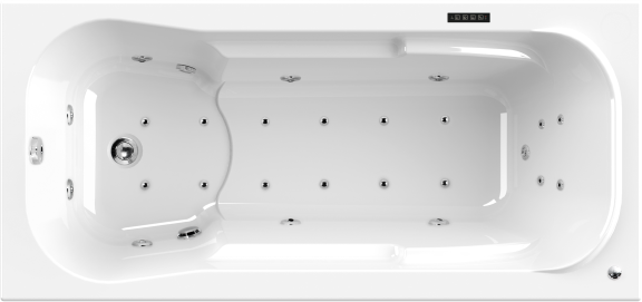 Sava è una vasca ergonomica con poggioli integrati. Il rialzo in un lato della vasca consente una seduta confortevole alla quale volendo si può aggiungere un cuscino poggiatesta. Si possono aggiungere anche delle maniglie come accessorio.