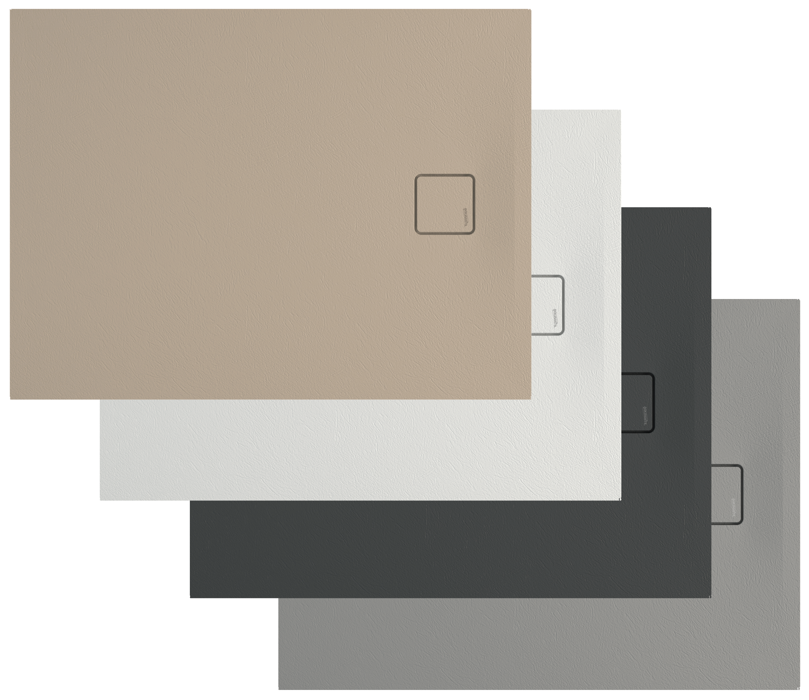 Stone DeLuxe Duschwannen aus Gussmarmor bieten eine solide und elegante Oberfläche, die Beton in Weiß, Beige, Schwarz oder Zementgrau imitiert. Eine attraktive Siphonabdeckung im gleichen Effekt wie die Oberfläche der Duschwanne trägt zum charakteristischen Erscheinungsbild der Stone DeLuxe Duschwannen bei.