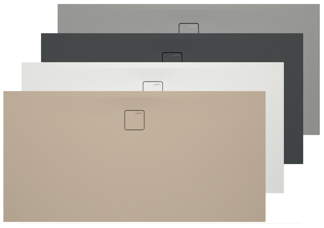 Stone DeLuxe Duschwannen aus Gussmarmor bieten eine solide und elegante Oberfläche, die Beton in Weiß, Beige, Schwarz oder Zementgrau imitiert. Eine attraktive Siphonabdeckung im gleichen Effekt wie die Oberfläche der Duschwanne trägt zum charakteristischen Erscheinungsbild der Stone DeLuxe Duschwannen bei.