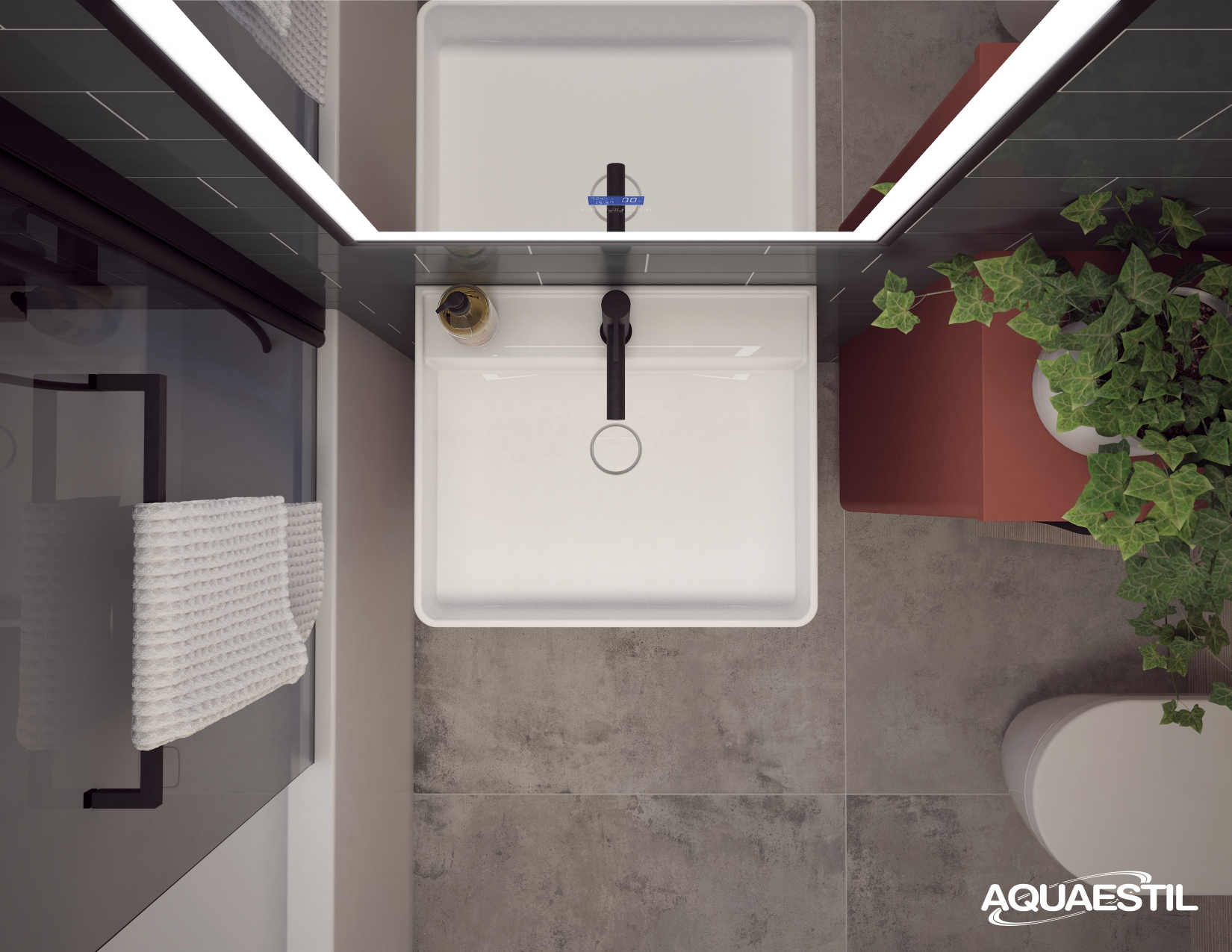 Aquaestil bathroom furniture washbasins are made of cast marble, or in certain lines, ceramic. For cleaning and maintaining Aquaestil washbasins, you may use Aquaestil Cleaning Solution for Acrylic and Glass Surfaces or a standard liquid bathroom detergent. To remove limescale, we recommend using alcohol vinegar or limescale cleaners that do not contain microgranules, which could scratch the surface of the washbasin.