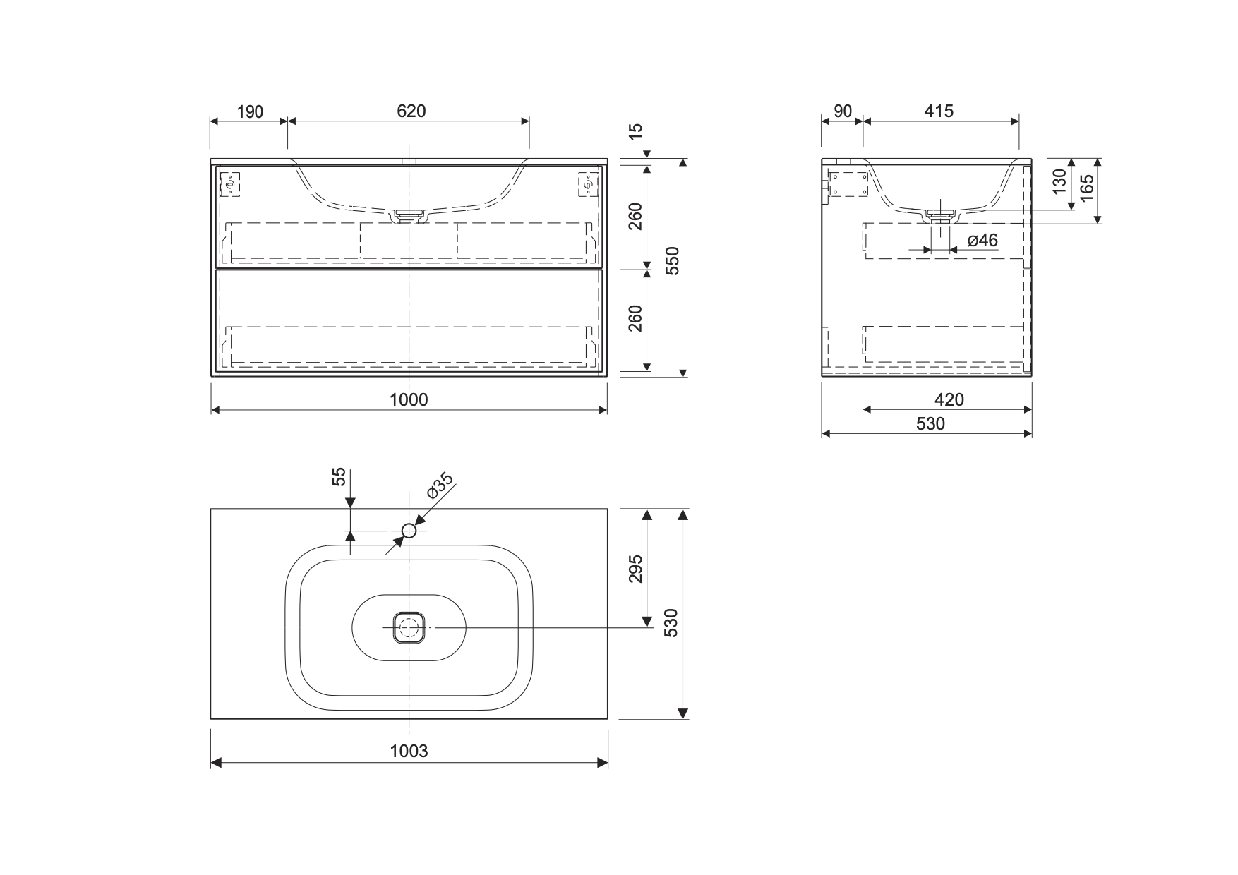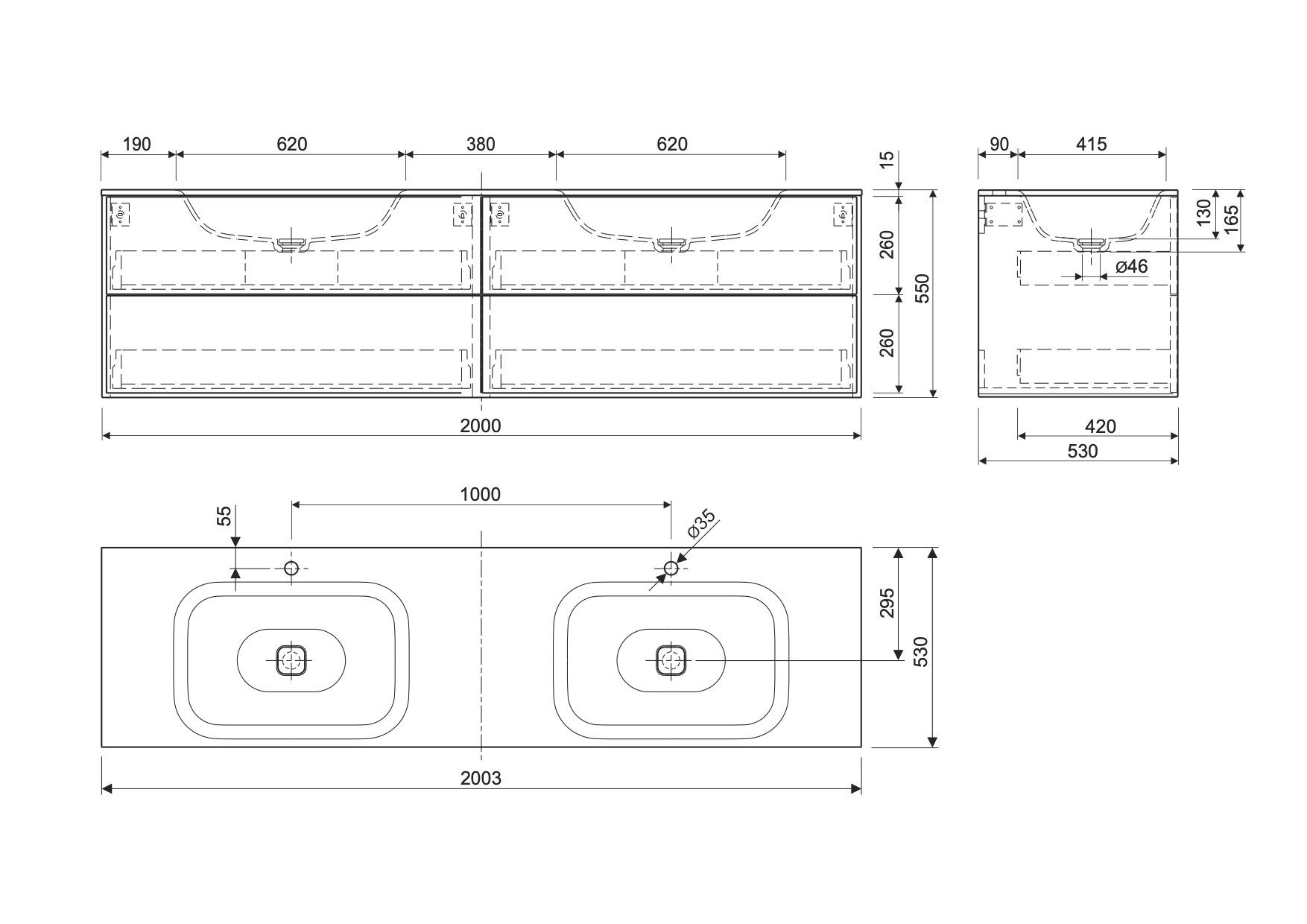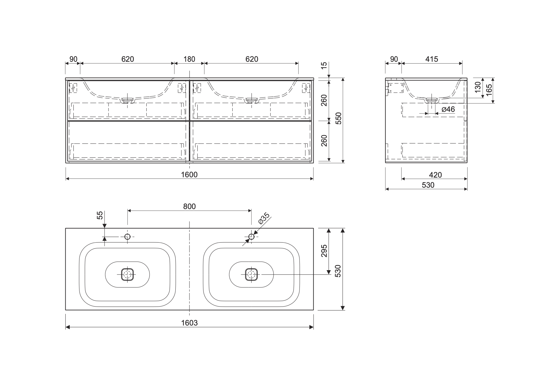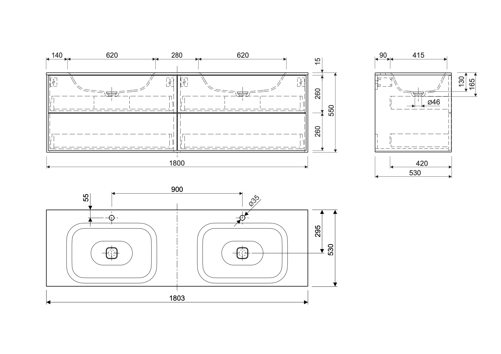 The Titan II premium bathroom furniture consists of a single or double basin and a vanity unit made of the ASTONE composite material, with a front comprising two or four drawers available in a variety of colours and styles.