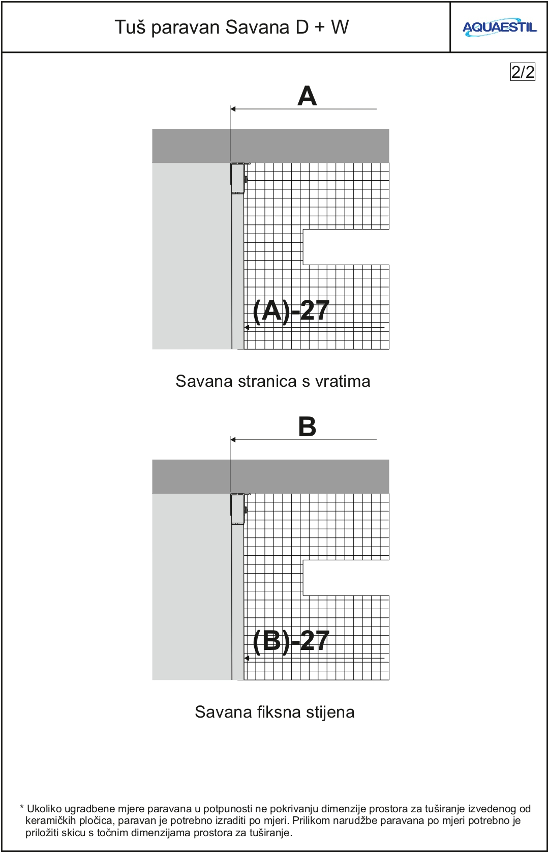 - Ukoliko se paravan postavlja na pločice, a ne na tuš kadu, uz narudžbu je potrebno dostaviti nacrt sa točnim dimenzijama prostora za tuširanje.