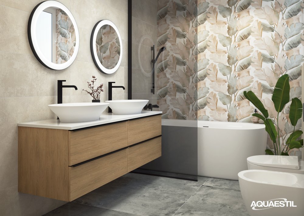 Material kopalniškega pohištva Aquaestil je vodoodporen, vendar ne popolnoma vodotesen. Dolgotrajna izpostavljenost visoki ravni vlage in vode lahko povzroči nabrekanje robov lesenih delov pohištva in možnost korozije ogledal.