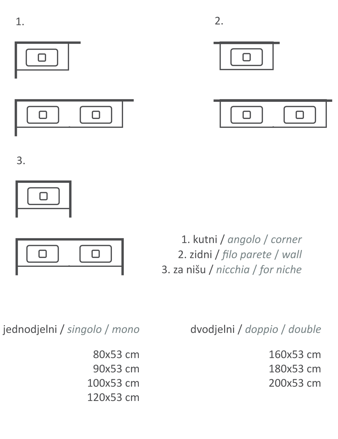 - Umivalnik je po želji dobavljiv z ali brez luknje za mešalnik.