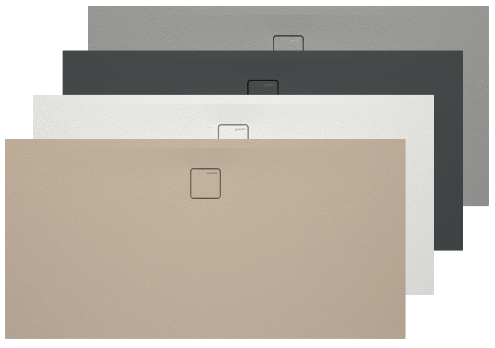 Stone DeLuxe tuš kadi iz litega marmorja nudijo trdno in prefinjeno površino, ki posnema beton v beli, bež, črni ali cementno sivi barvi. Atraktiven pokrov sifona, izdelan v enakem učinku kot površina tuš kadi, prispeva k značilnemu videzu tuš kadi Stone DeLuxe.